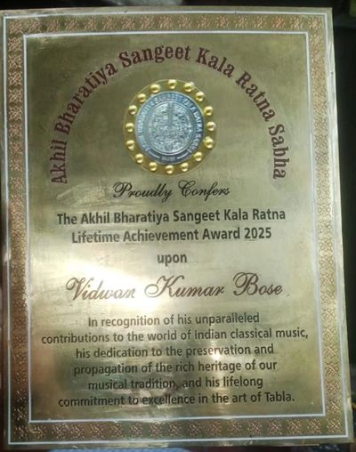 Every year from its beginning concert Debtar, Akhil Bharatiya Sangeet Kala Ratna Sabha will be awarding the ABSKRS Lifetime Achievement Award to one or two of the most notable musicians of our time.